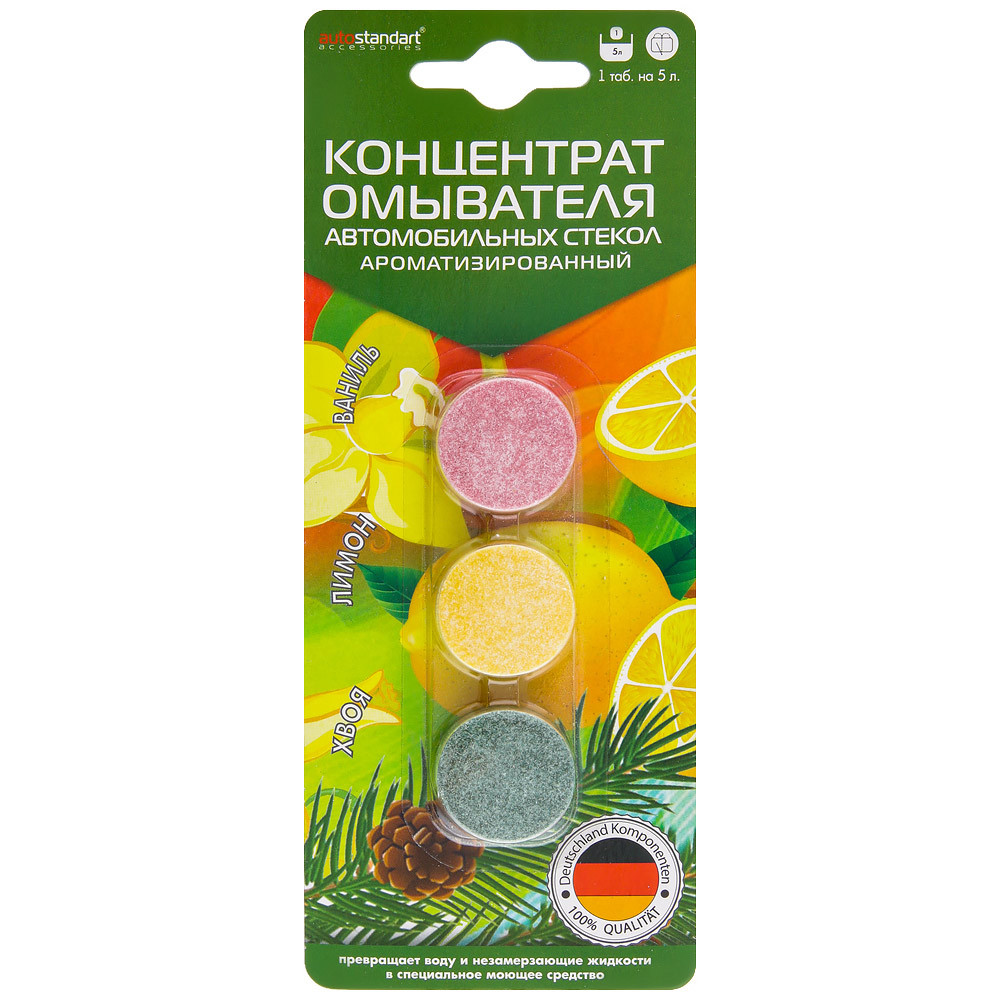 Концентрат омывателя для стекла "Ваниль, лимон, хвоя" (3 табл) на 5л AUTOSTANDART