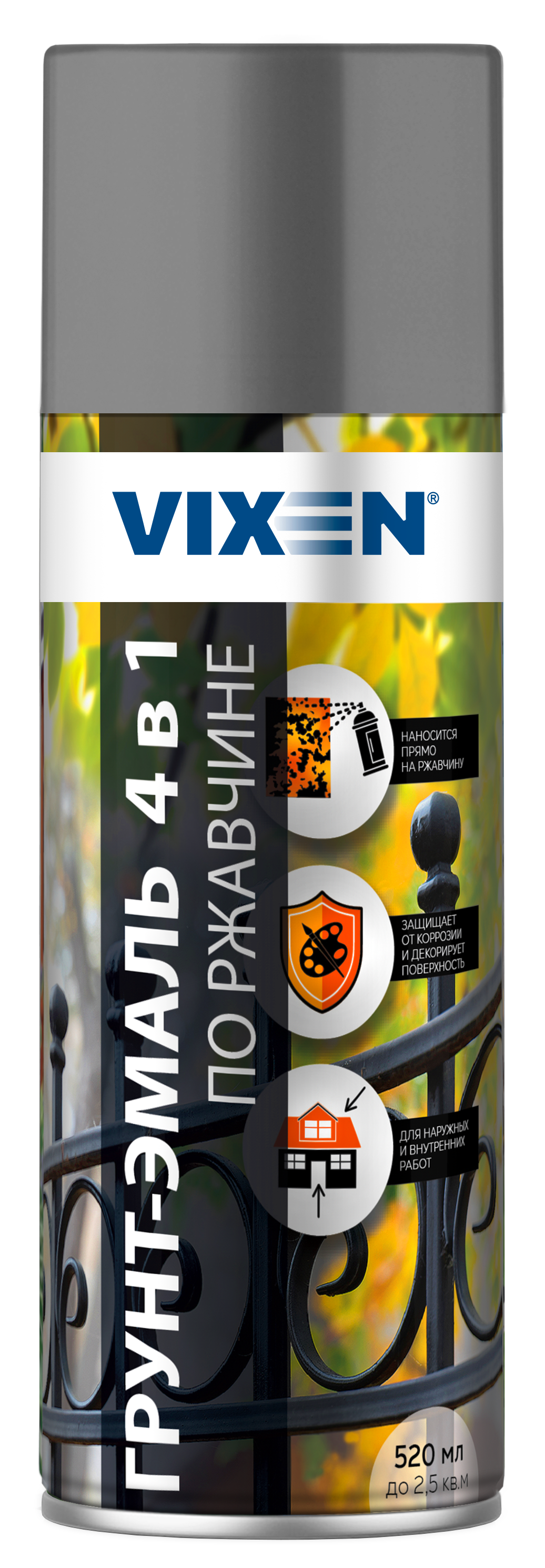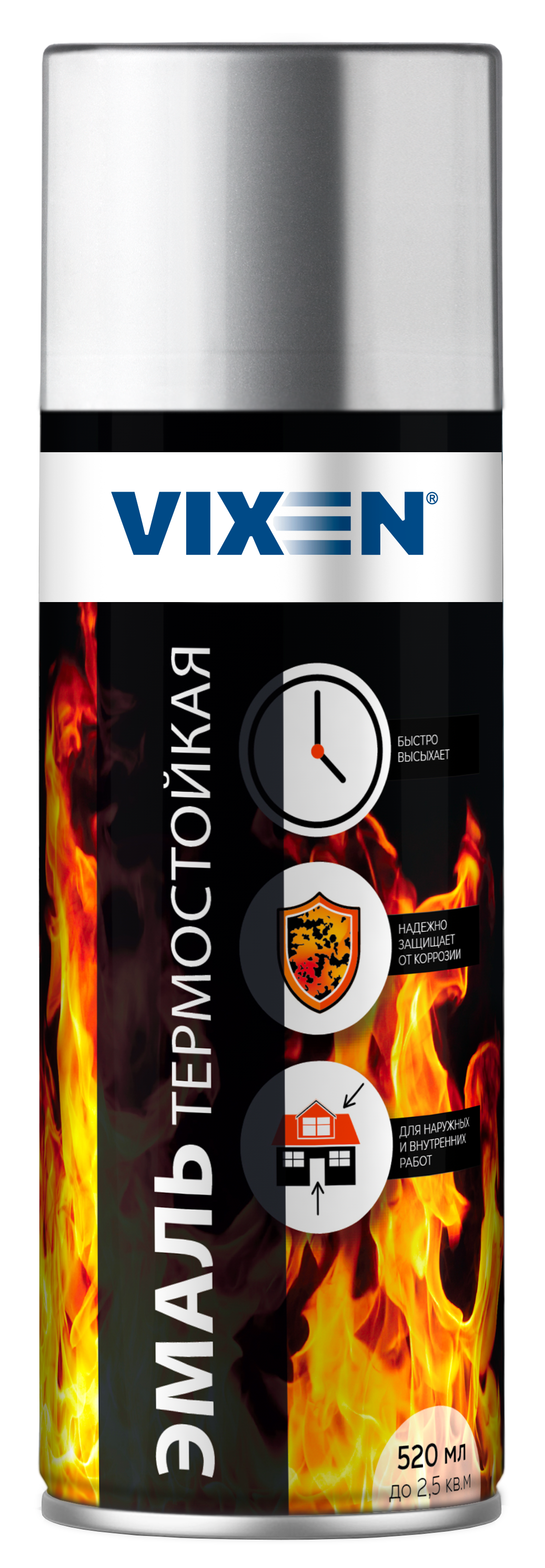 Эмаль аэрозольная VIXEN термостойкая Серебристая 520мл, VX-53000