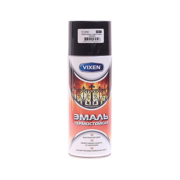 Эмаль аэрозольная VIXEN термостойкая Черная 520мл, VX-53002