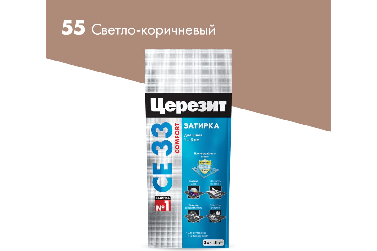 Затирка CERESIT CE33 2кг светло-коричневая