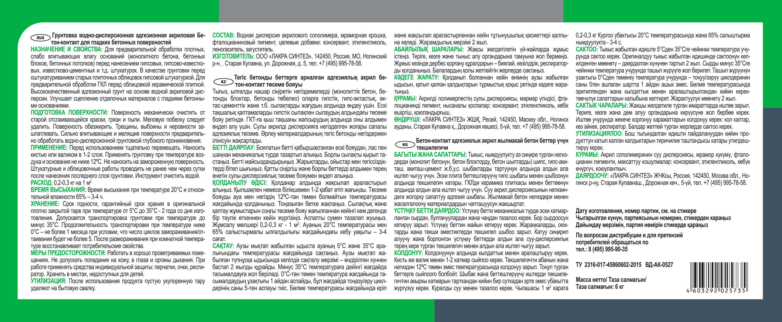 Высококачественный адгезионный грунт на основе водной акриловой дисперсии. Улучшает сцепление отделочных материалов к гладким бетонным основаниям.